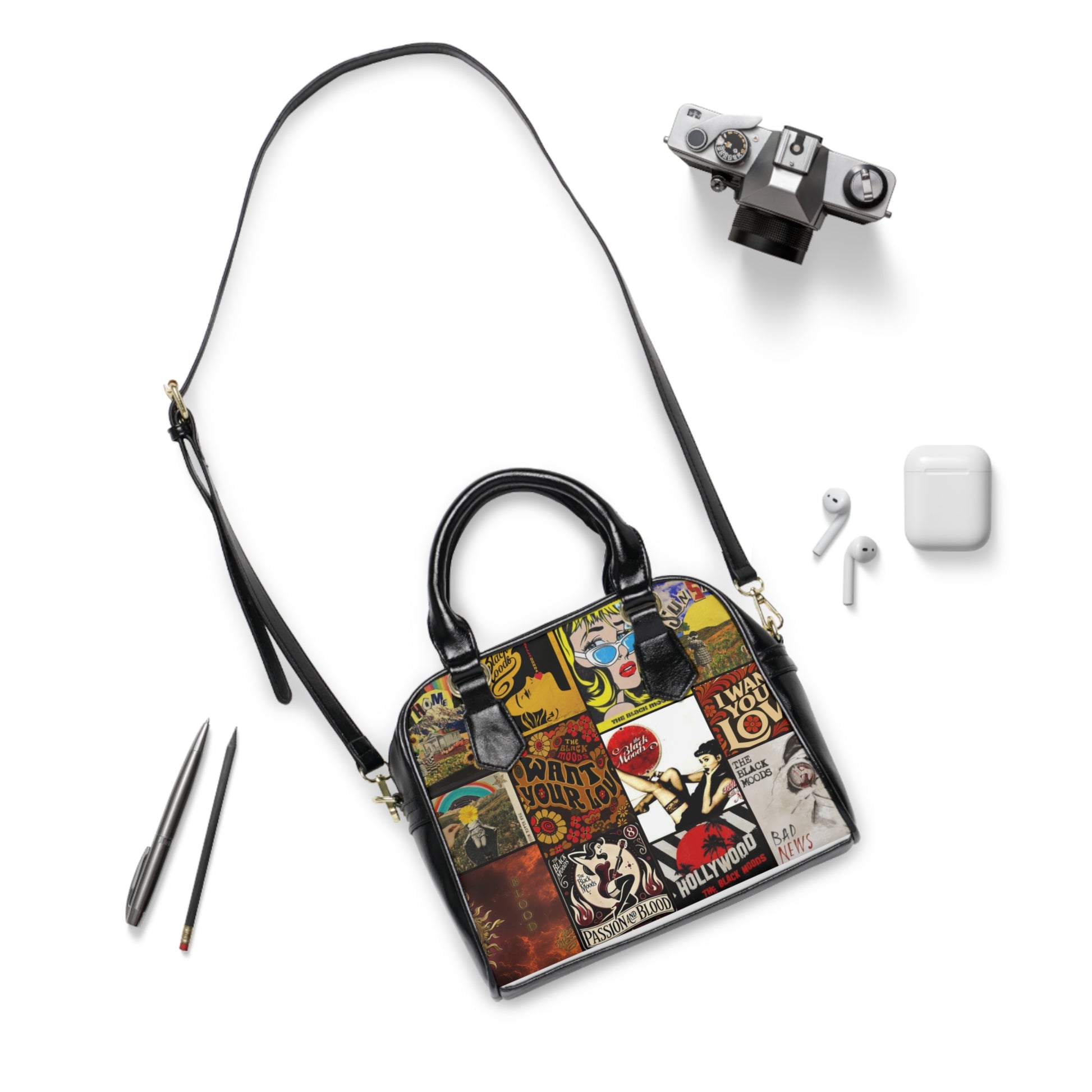 A bold, retro album-art shoulder bag made for everyday chaos.